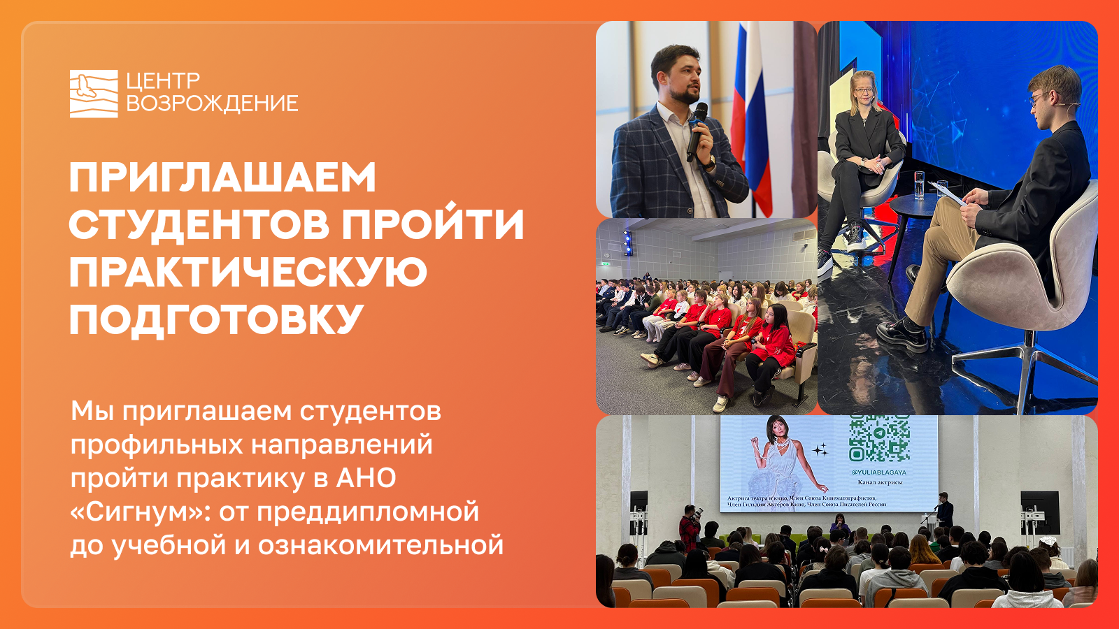 Мы приглашаем студентов профильных направлений пройти практику в АНО «Сигнум»: от преддипломной до учебной и ознакомительной.